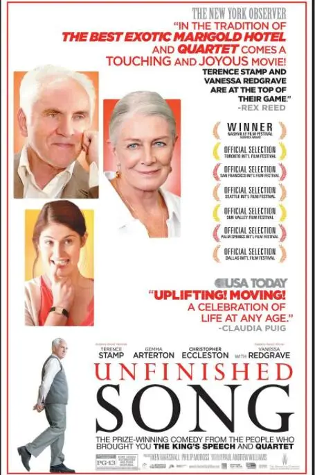 亚瑟(特伦斯·斯坦普 Terence Stamp 饰)的妻子玛丽昂(瓦妮莎·雷德格瑞夫 Vanessa Redgrave 饰)虽然身患绝症,却一直坚持参加小镇上的老年合唱团。这个由年轻音乐教师伊丽莎白(杰玛·阿特登 Gemma Arterton 饰)在工作之余组织起来的合唱团不仅是镇上老年人们消磨时光的好去处,更为他们结交新朋友提供了机会。可是固执的亚瑟并不支持也不理解玛丽昂唱歌,他只希望爱妻可以安心在家养病。但亚瑟终归执拗不过玛丽昂,即使在生命最后的时光里,玛丽昂也如愿参加了合唱比赛。小镇的老年合唱团通过了比赛的初赛,玛丽昂在赛后安详去世。虽然伊丽莎白和其他老人都想帮助亚瑟走出悲伤,但倔强的亚瑟不仅将他们拒之千里之外,甚至对亲生儿子詹姆斯(克里斯托弗·埃克莱斯顿 Christopher Eccleston 饰)都恶言相加。亚瑟本打算将自己永久关闭在...